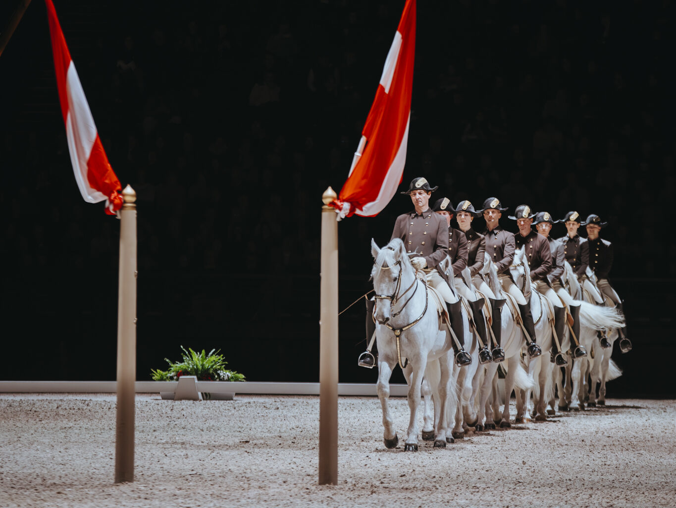 À Paris La Défense Arena, les spectateurs ont pu découvrir toute la richesse de cette tradition lors d’un spectacle réunissant vingt-cinq étalons Lipizzan. Ensemble, ils ont présenté ce que l’institution décrit comme « l’élégance et l’harmonie du plus beau ballet des étalons blancs », un enchaînement de figures spectaculaires issues de la Haute École, telles que la cabriole, la courbette ou le piaffer.