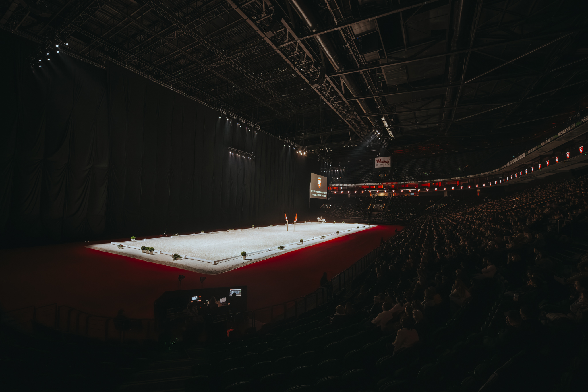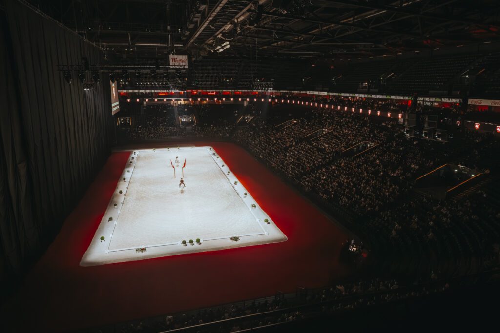 Le sol a été spécialement aménagé pour garantir les conditions optimales de dressage, tandis que la configuration des tribunes a permis d’offrir une visibilité idéale à l’ensemble du public. Cette transformation spectaculaire illustre parfaitement la capacité de la salle à se réinventer selon les besoins de chaque événement.