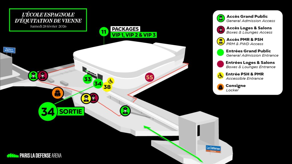 Plus ancienne académie d’équitation au monde dont l’excellence est inscrite au patrimoine immatériel de l’UNESCO, L’École Espagnole d’Équitation de Vienne sera en représentations exceptionnelles les 28 février et 1er mars 2026 à Paris La Défense Arena. Afin de profiter au maximum de l’événement dans les meilleures conditions possibles, voici quelques informations clés pour bien préparer votre venue.