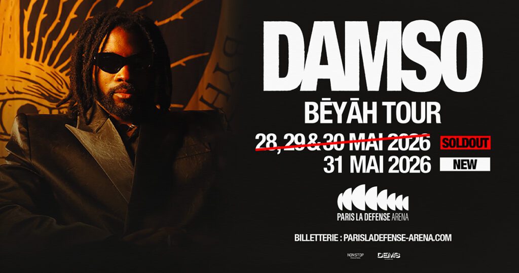 Quatre ans après ses derniers shows dans la capitale, Damso se produira en concert à Paris La Défense Arena les 28, 29, 30 & 31 mai 2026. Il investira la plus grande salle d’Europe pour quatre dates exceptionnelles. Un événement Non Stop Production.