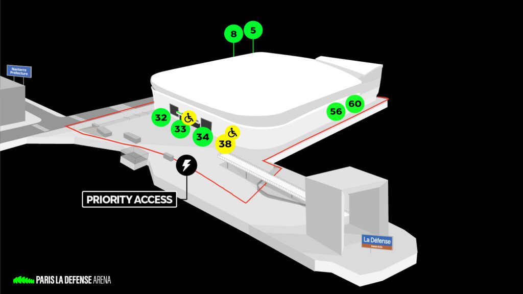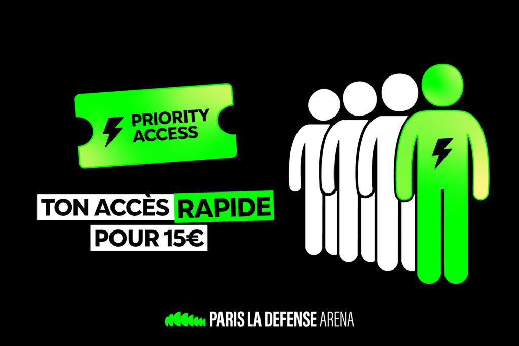 Avec ce nouvel accès coupe-file, tu réduis ton temps d’attente avant la sécurité et tu profites d’une arrivée tranquille à Paris La Défense Arena. Grâce à un accès dédiée, tu passes directement par un contrôle de sécurité réservé, loin de la file d’attente principale. Résultat : un accès rapide à ta porte d’entrée pour le scan de ton billet, sans stress.