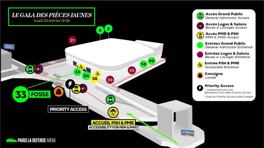 Le 22 janvier 2026, Paris La Défense Arena deviendra le théâtre d’une soirée exceptionnelle : le Gala des Pièces Jaunes. Pour sa troisième édition, cet événement incontournable se déplace dans la plus grande salle indoor d’Europe. Voici les principales informations à retenir pour bien planifier votre soirée.