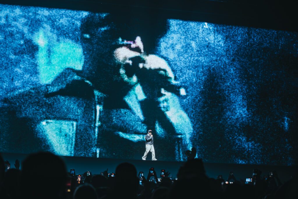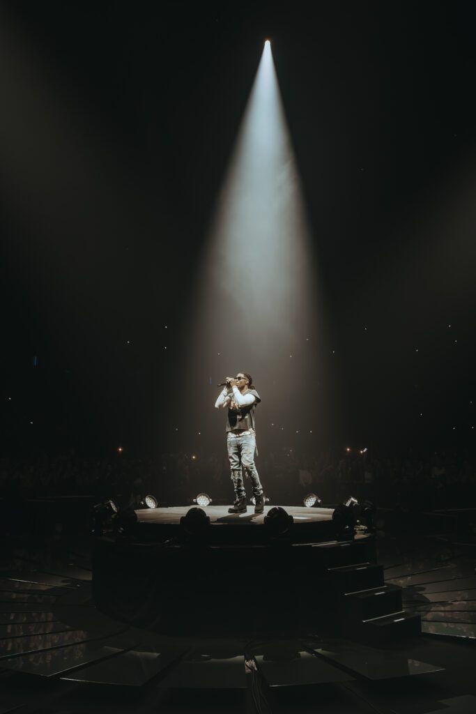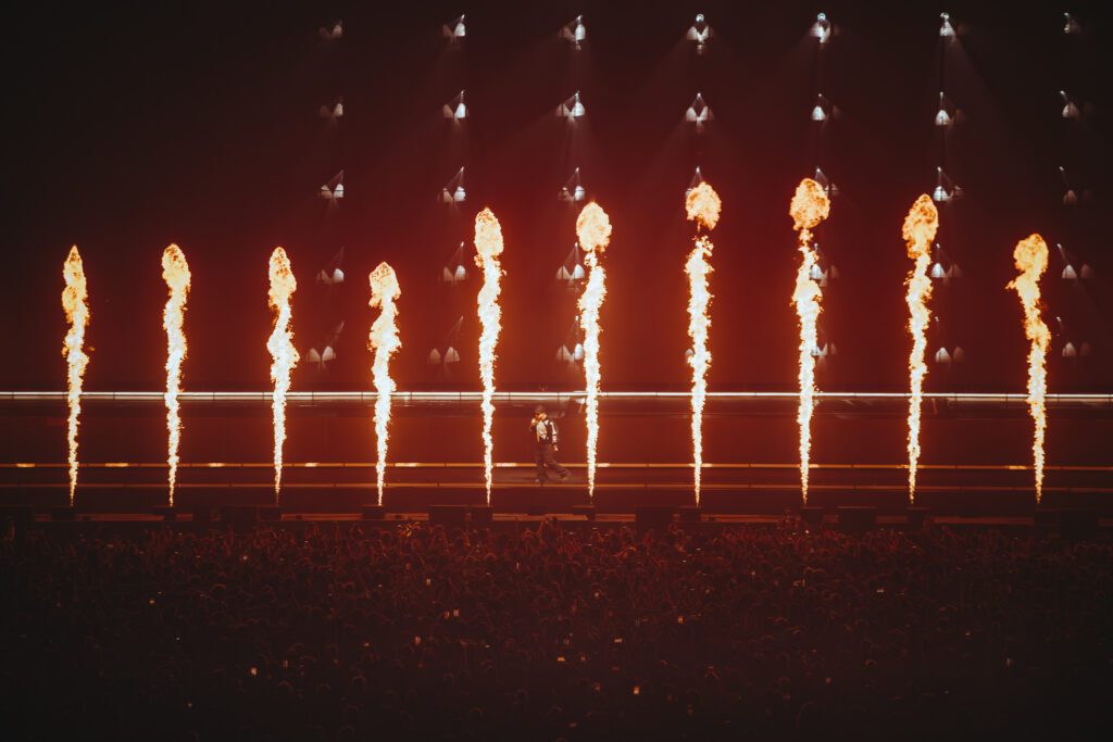 Pour ce concert à Paris La Défense Arena, la mise en scène était au niveau des ambitions d’Hamza, avec des jeux de lumières spectaculaires, des écrans monumentaux et un son pensé pour chaque gradin. La scénographie a sublimé l’univers visuel de l’artiste, entre codes du rap, références US et esthétique trap, offrant des tableaux puissants à immortaliser en photo tout au long du show. Dans cette arena modulable, le dispositif technique a permis de créer à la fois l’impact d’un show de stade et la proximité d’un concert rap plus intimiste.
