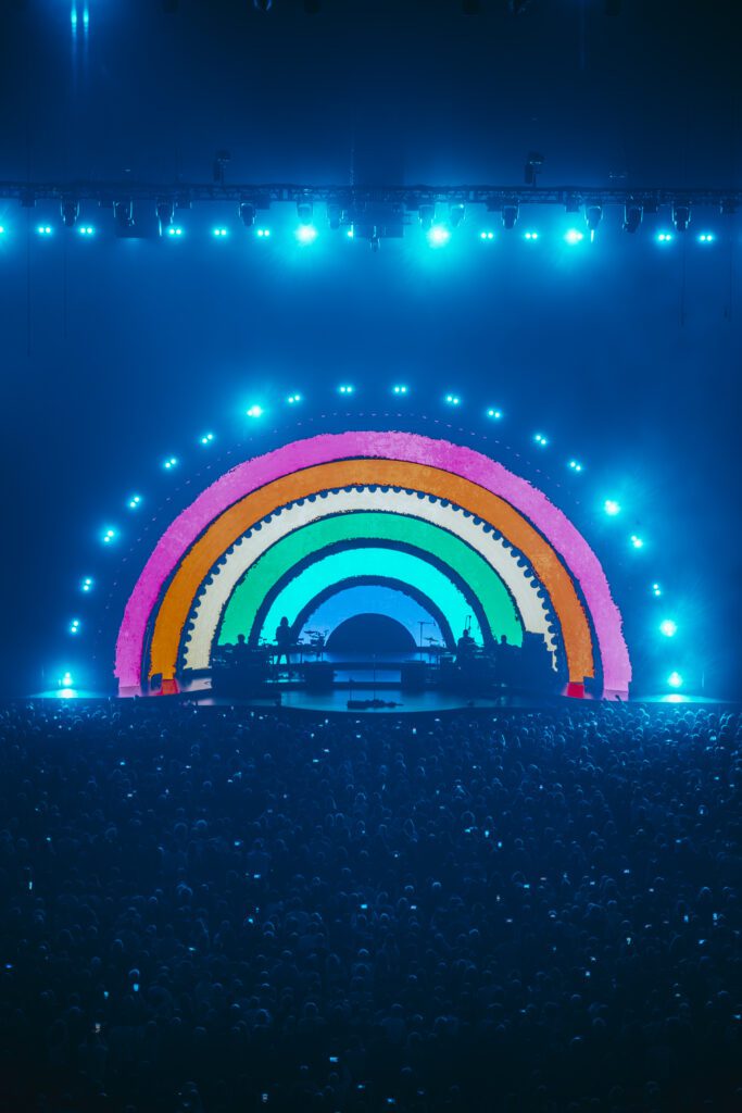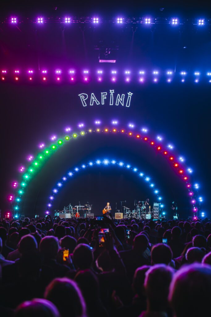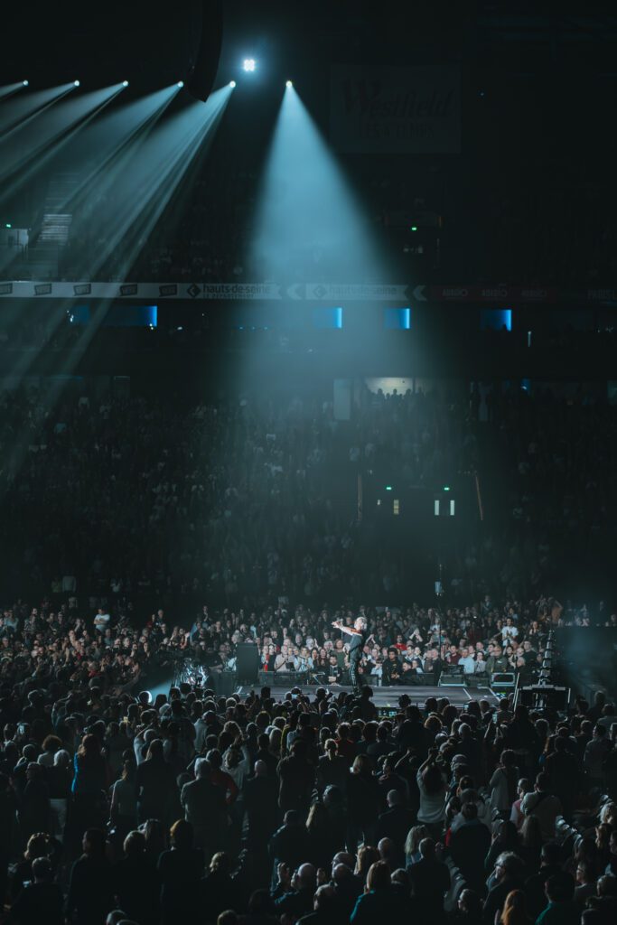 Le concert a débuté en douceur avec « C’est quand ça commence », issu de son dernier album sorti en 2024, avant que l’intensité ne monte progressivement avec des titres comme New York avec toi, Saute !, Les plages ou Argent trop cher. La scène de Paris La Défense Arena, surmontée d’un écran géant et parfois illuminée de couleurs arc-en-ciel, a servi de toile de fond à ce voyage musical qui a fait vibrer toutes les générations présentes.