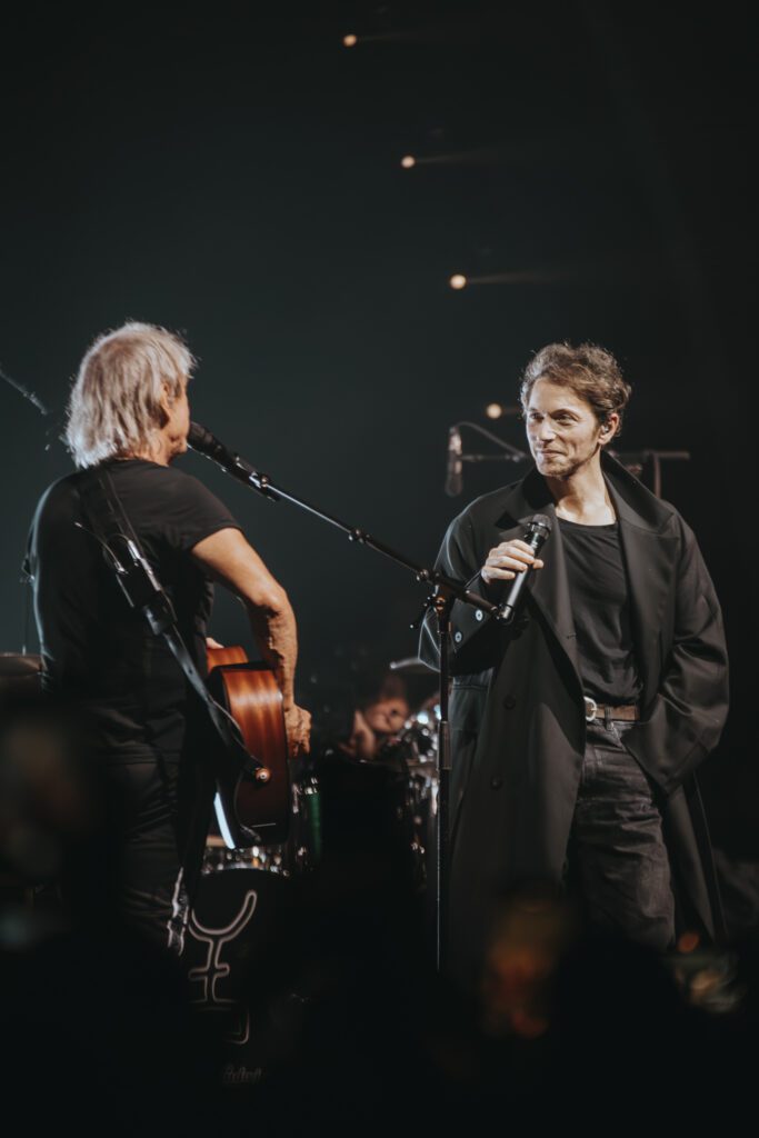 Assis au bord de la scène pour une interprétation intimiste de « Dis, quand reviendras-tu », Aubert a plongé la salle dans un silence recueilli, avant de relancer l’énergie avec des morceaux plus électriques. L’émotion et la spontanéité ont été au cœur de ce concert mémorable.