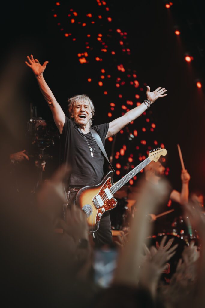 Tout au long du concert, l’énergie du public a été palpable. De la fosse aux gradins, chacun a participé à cette grande fête musicale, reprenant en chœur les refrains, scandant les titres emblématiques et vivant pleinement chaque moment du live. Jean-Louis Aubert a circulé dans l’arène, alternant interactions proches avec le public et performances scéniques intenses, renforçant l’impression d’un spectacle vivant et partagé.
