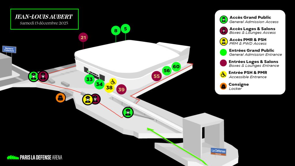 Si vous venez depuis le parking, vous pourrez rentrer par l’entrée 5. N’hésitez pas à faire appel au personnel d’accueil dès votre arrivée. Les spectateurs doivent donc se munir systématiquement de leur carte lors de leur venue à Paris La Défense Arena.