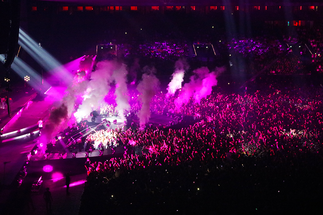 Pour ce concert « unique » à Paris La Défense Arena, Bigflo & Oli ont également réservé de belles surprises à leurs fans. Pour la musique « Papa », les deux frères toulousains invitent leur père, Fabian Ordonez, à partager la scène avec eux pour un moment familial intense et touchant. C’est ensuite Black M et Soprano qui surgissent pour enchanter les 40 000 fans avec leur hymne « C’est que du rap ». Bigflo & Oli sont absolument étincelants dans cette « nuit de rêve » qu’ils vont un peu plus illuminer avec l’une des chansons préférées de leur public, « Sur la Lune ». Les frangins demandent alors à toute la salle d’allumer les flashs des téléphones pendant qu’une représentation géante de la lune survole l’immense fosse. L’un des moments les plus forts du concert, la salle brille de mille éclats.