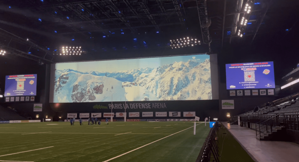 Enfin, la présence continue du logo et des vidéos de Serre Chevalier sur le parvis ancre durablement cette visibilité auprès des spectateurs, qu’ils soient là pour un match de rugby, un concert ou un événement corporate.