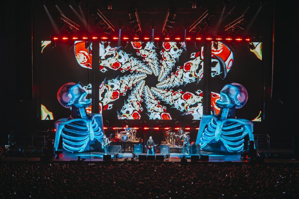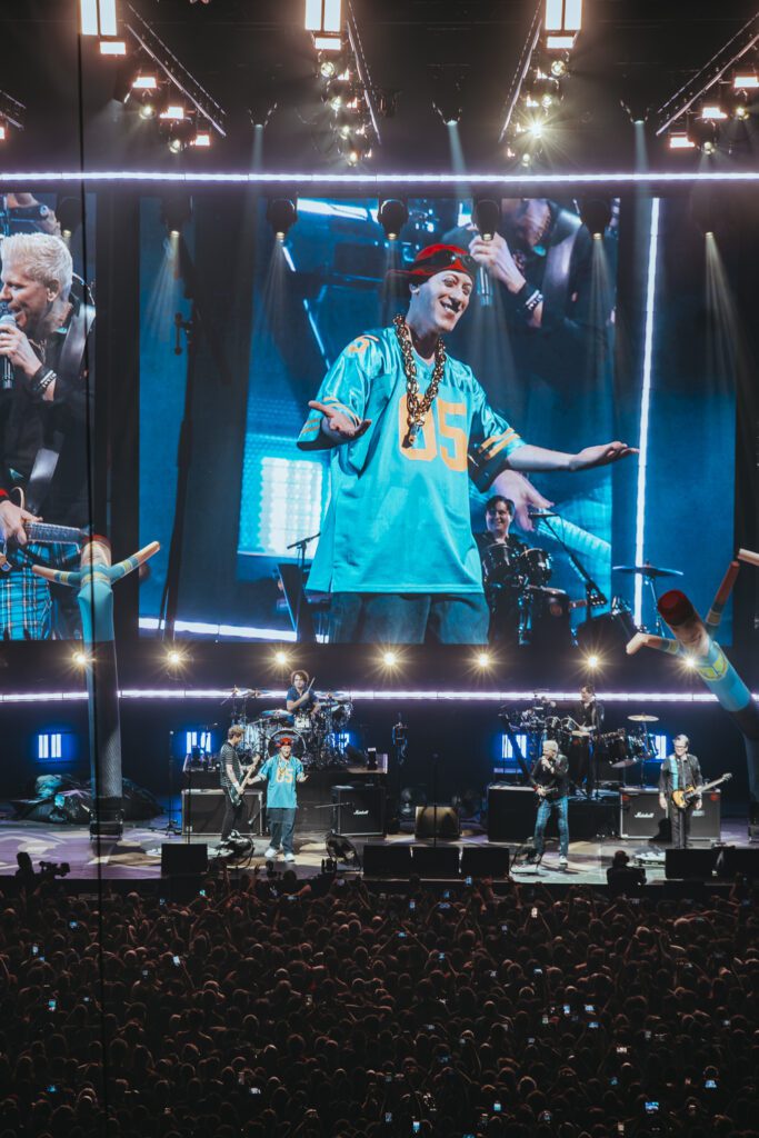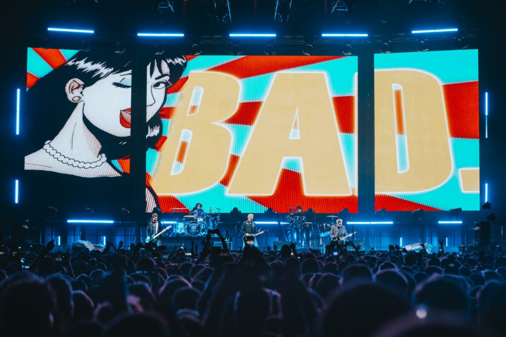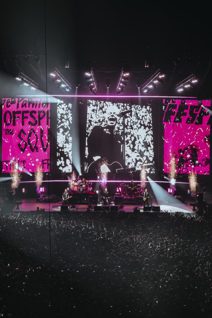 À 21 h 20, les lumières s’éteignent, les cris montent, et The Offspring fait enfin son entrée. Dexter Holland, Noodles et leur formation livrent un concert d’une intensité rare, à l’image de leur carrière. Paris La Défense Arena tremble dès les premières notes de Come Out and Play, avant d’enchaîner sur All I Want et Want You Bad. La scénographie, entre écrans géants, jets de lumière et visuels colorés, sublime chaque instant.