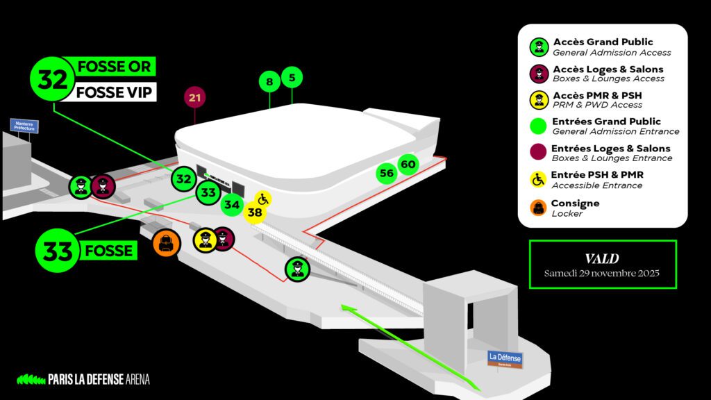 Préparez vous à vivre une soirée exceptionnelle le 29 novembre 2025 à Paris La Défense Arena. Après 3 ans d’absence et une tournée des festivals, Vald signe son grand retour sur scène en 2025. Voici quelques éléments clés pour vous préparer à vivre une soirée exceptionnelle avec le rappeur d’Aulnay-Sous-Bois ! Un événement Live Nation.